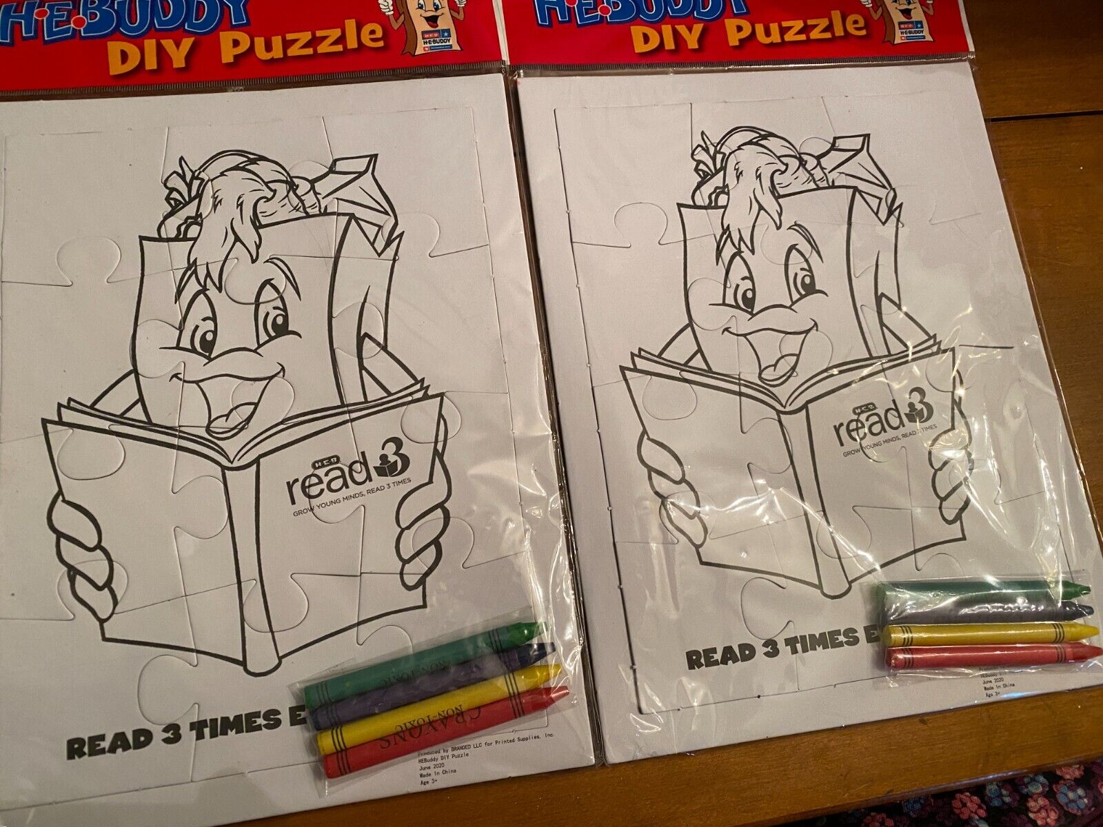 2 HEB Buddy D.I.Y. Puzzle, comes with 4 crayons, 12 piece puzzle