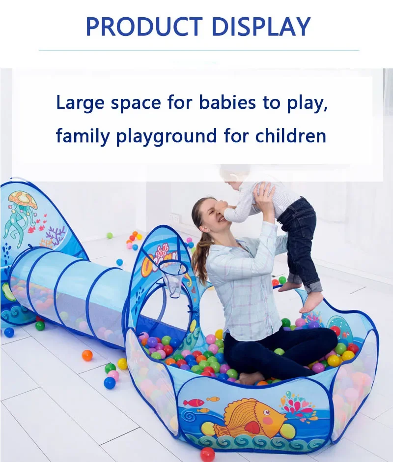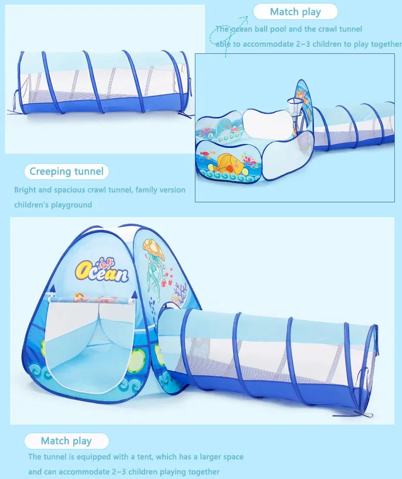 Package Contents: 1 x Tent Toy 1 x Tunnel 1 x ball pit 1 x Zippered Storage Bag