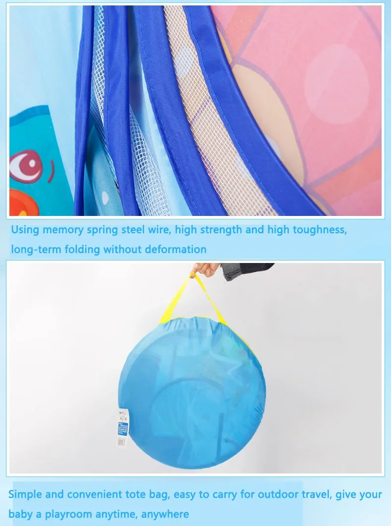 Description: 1. The foldable child toy tent is practical, water resistant, easy to clean and carry.