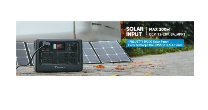 BLUETTI EB55 Portable Power Station 700W 537Wh LiFePO4 Battery Pack Solar Generator with 4 AC Outlets, 100W USB-C, Regulated 12V DC, Emergency Backup Power for Outdoor Camping Home Vanlife.
