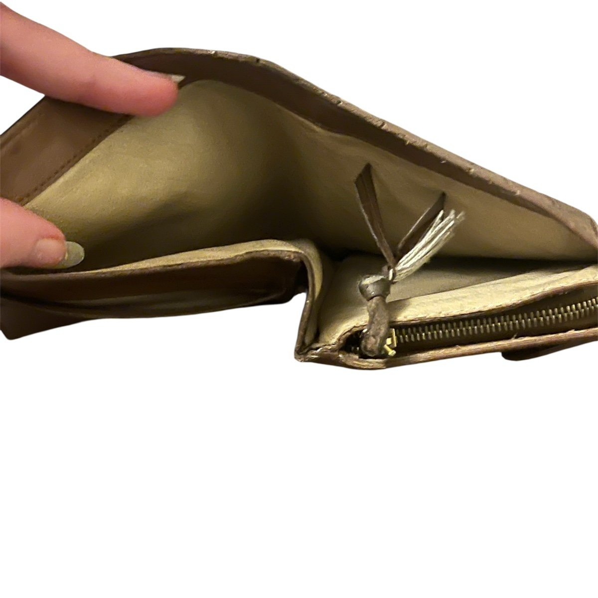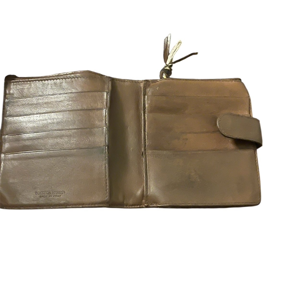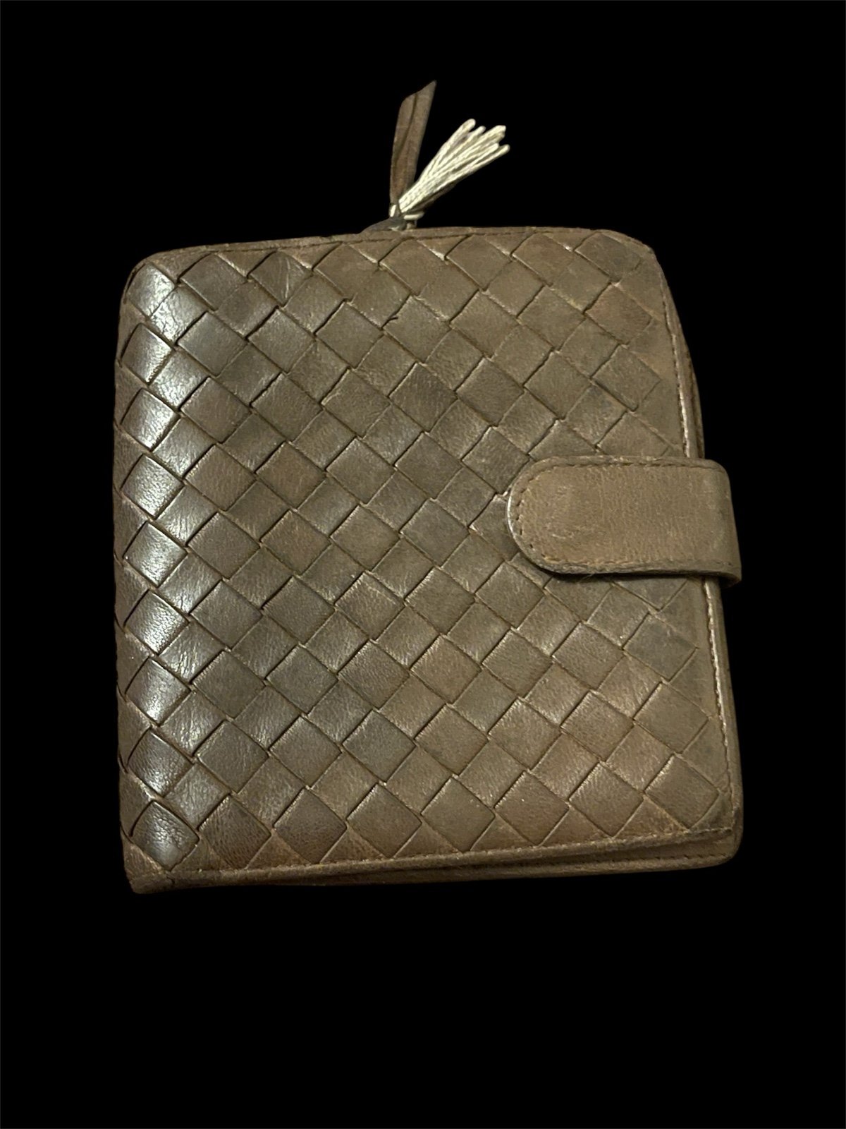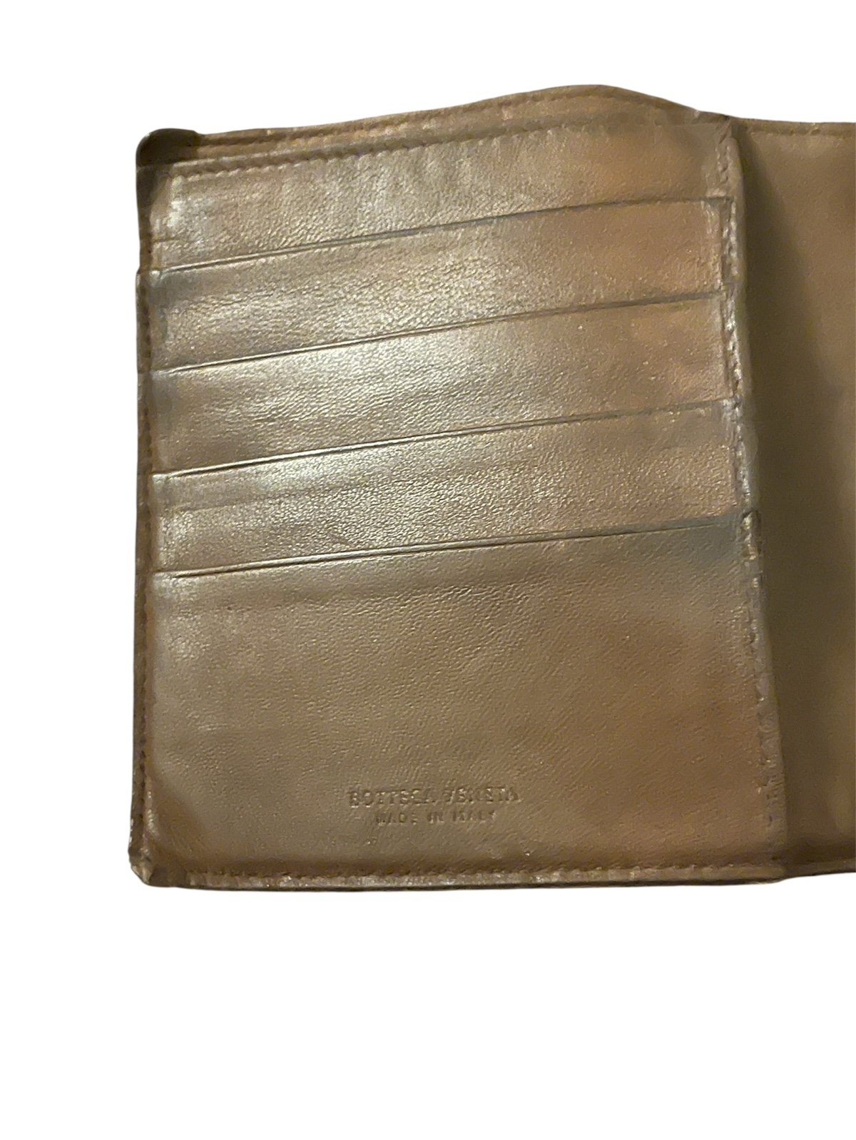 The Bottega Veneta Intrecciato Brown Leather Bifold Wallet is a luxurious and stylish accessory. Made from high-quality leather with a woven design, this wallet exudes sophistication and elegance. Featuring multiple credit card slots and a secure zipper closure, it is both functional and stylish, making it the perfect addition to any woman's wardrobe. The classic brown color and bifold design add a touch of timeless appeal to this chic and luxurious accessory.