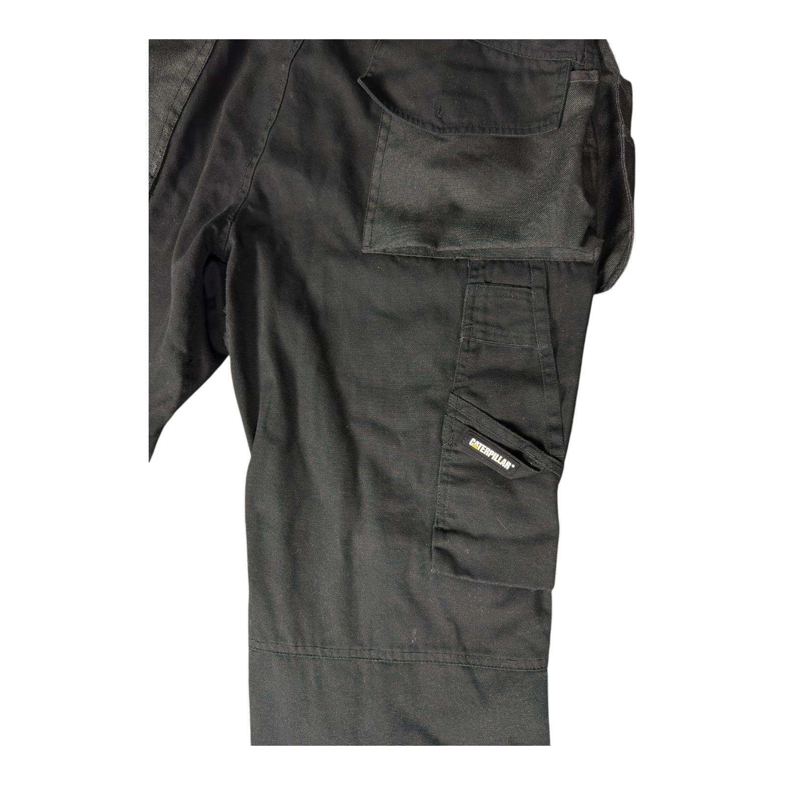 The Cat Double Knee Utility Pants are a rugged and versatile option for men looking for durable workwear. Made from black denim with ripstop nylon accents, these cargo pants feature a relaxed fit and button closure. With a vintage style and a 90s-inspired theme, they are perfect for all seasons and come in a classic size 38 waist and 30 inseam. The double knee design adds extra protection, while the cargo pockets provide ample storage space for tools and essentials. Easy to care for with machine washable fabric, these pants are a must-have for any tradesman or outdoor enthusiast.