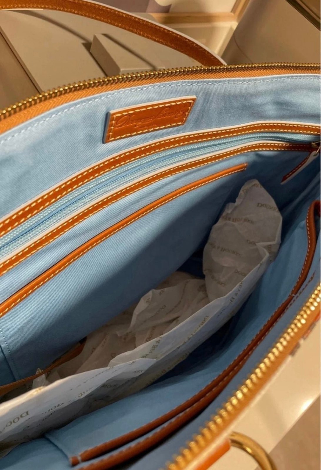 -“Dooney & Bourke Since 1975'' embossed leather label inside
