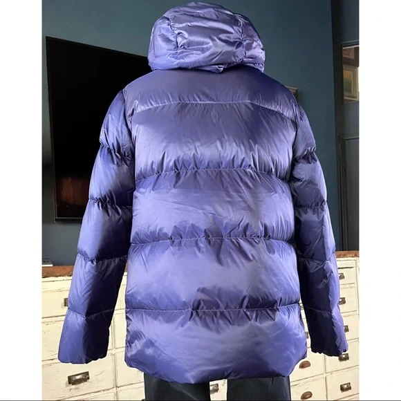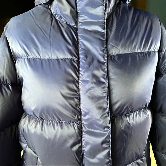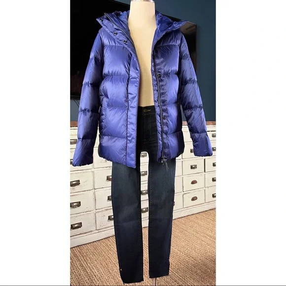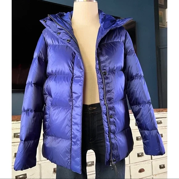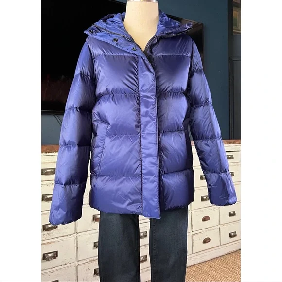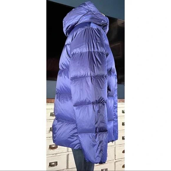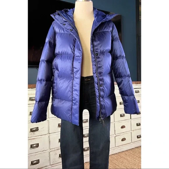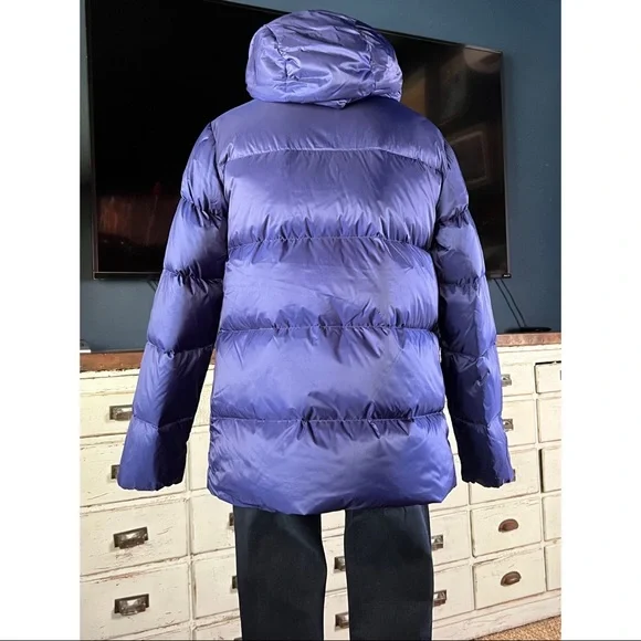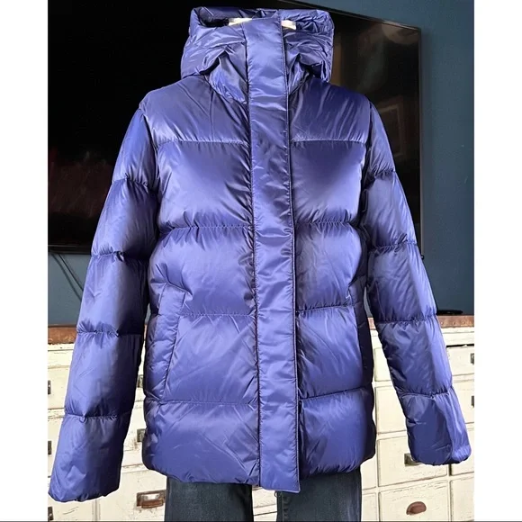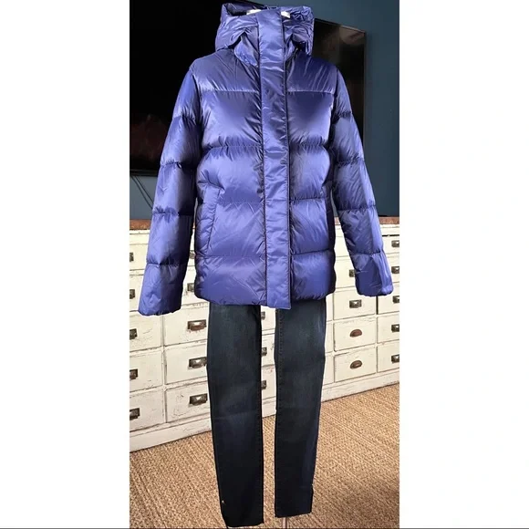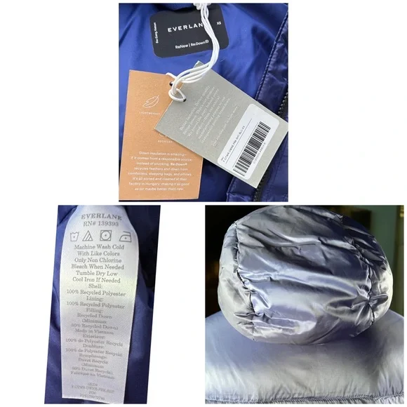 New With TagsSize XSThis gorgeous rich cobalt blue jacket by Everlane is made in collaboration with Re:Down to produce a jacket with a minimum of 80% recycled down filling.The blue fabric is 100% recycled polyester.It is lightweight but warm.The water resistant parka has a zipper closure with additional snap buttons for extra protection against the cold.The collar can stand up or lay flat depending upon preference or weather conditions.It has a convenient fixed hood.Measurements laying flat:Length 27”Bust 20 3/4”Sleeve 24”