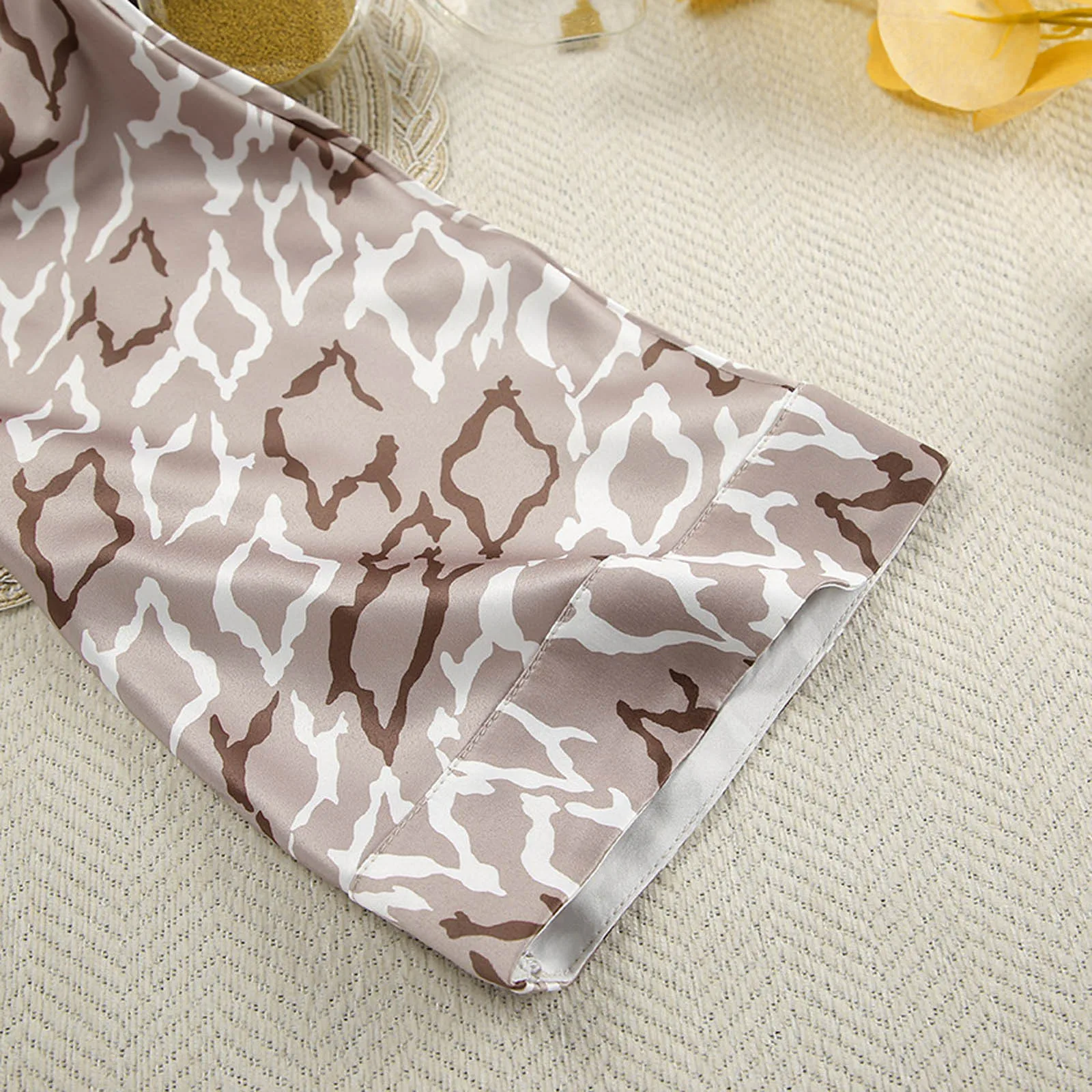 | Size:L | Bust:88-92cm/34.65-36.22'' | Waist:76cm/29.92'' | Hip:111cm/43.70'' | Sleeve:71cm/27.95'' | Length:136cm/53.54'' | Bottoms Length:109cm/42.91'' |