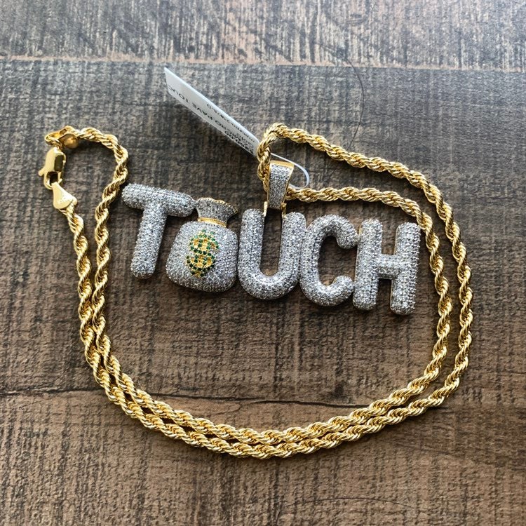 TOUCH Pendant in 925 Sterling Silver/Brass and Micro Pave Cubic Zirconia (5A Grade) with a 14K GP 3mm 24” Rope Chain.