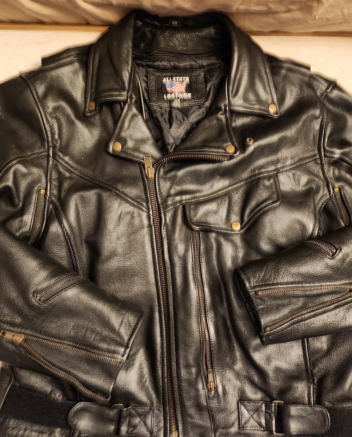 Allstate Leather Biker Jacket – Size 48, Classic Black Motorcycle Style