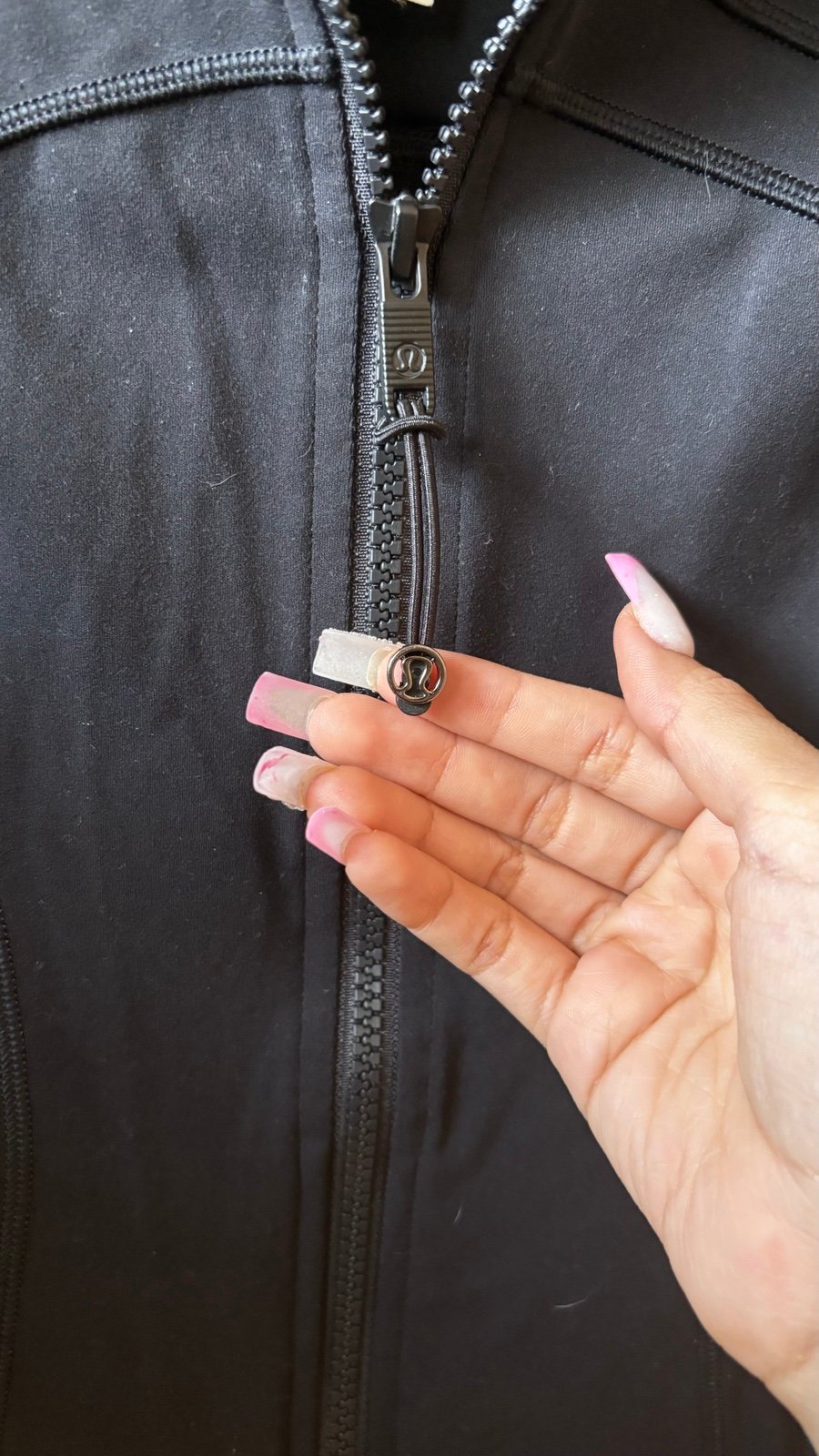 Size 0 authentic Lululemon Define Jacket. Has a little snag on the side and recently washed and let air dry, has some barely noticeable stains that i’m pretty sure can come off besides that in great condition.