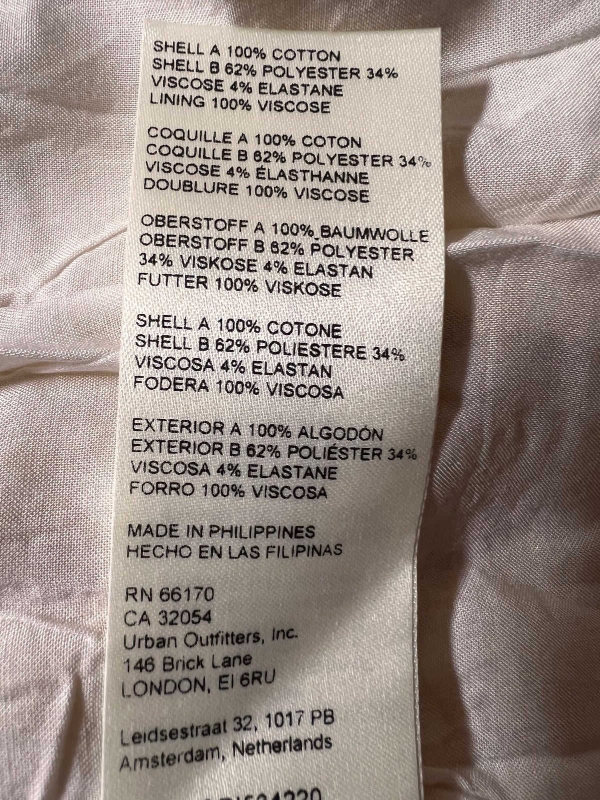 Cotton, polyester, viscose, elastane