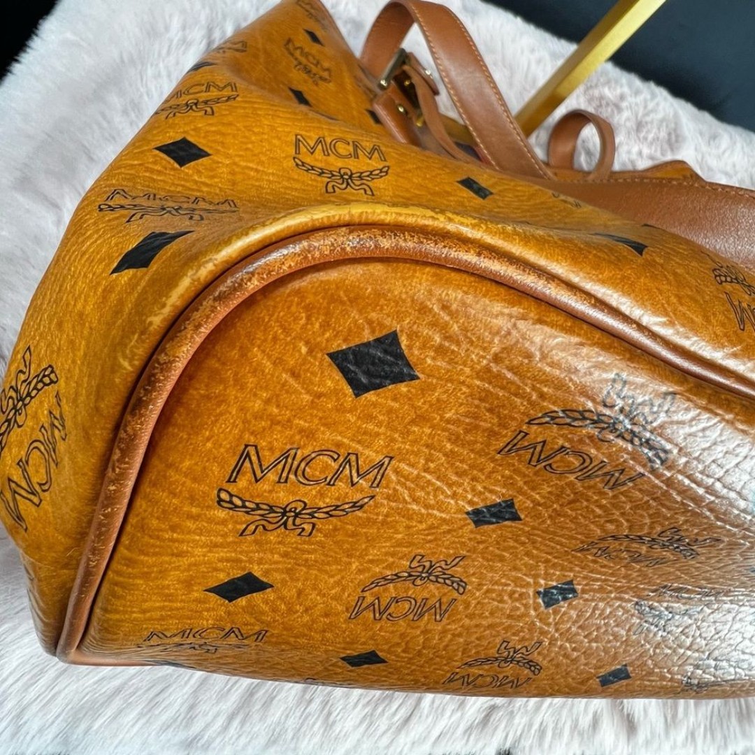 MCM Visetos Rudic Shopper Tote Cognac Orange Leather Handles & Piping | COA Included!