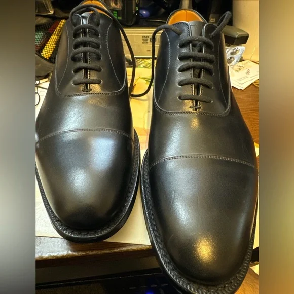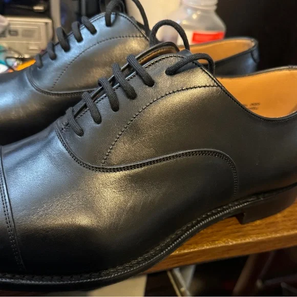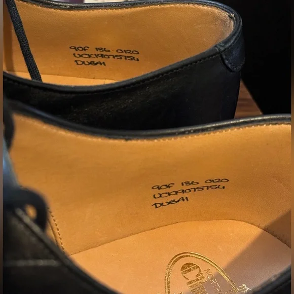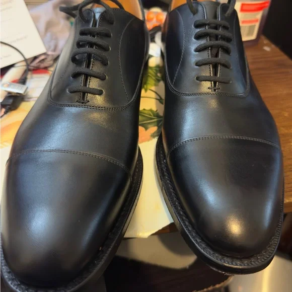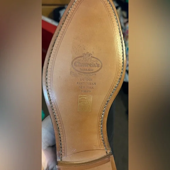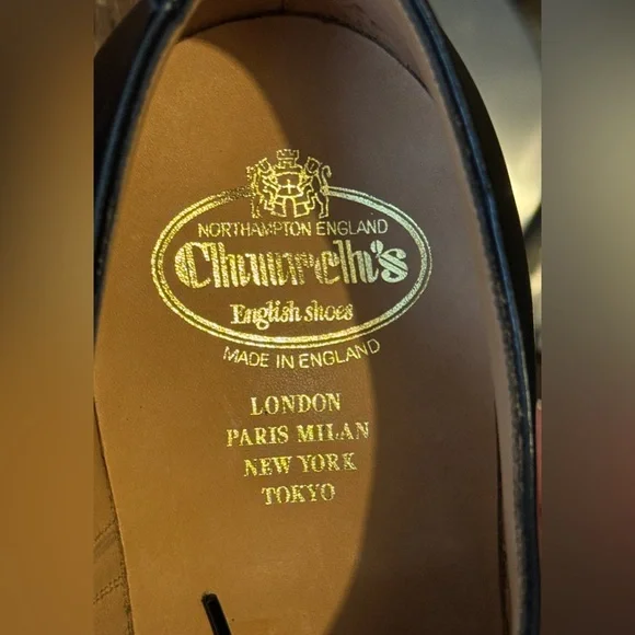 Never worn, Dubai Style, no box, Size UK 9 which is a US 10. Size F represents small. NWOTProduct description from Church’s WebsiteCrafted on Church’s 136 last, its narrow, pointed shape has contemporary appeal while remaining understated enough for more traditional settings. Its pared-back detailing includes double stitching along the toe cap and the upper. Its calf leather is treated so its natural beauty is not concealed, enhancing the shoe’s versatility and dignified demeanour. Also appropriate outside of the office, these smart shoes are easily coupled with occasion wear. Made in Northampton, England.Product code: EEB017_9WF_F0AAB_F_000000Classic lace-up oxford with cap toe stitchingCalf leather with natural finishCotton lacesBlind eyeletsLast 136Leather soleInternal lining for longevity of wearHandwritten shoe info to liningGoodyear constructionChurch’s crest to sock and soleWe advise to purchase a half size smaller than your usual sizeImported product