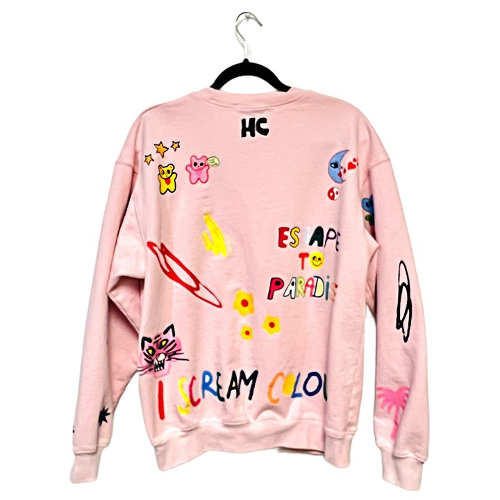 The Mayfair Somebody Loves You Crewneck in Sherbet is a comfy cotton sweatshirt with a playful attitude. Featuring doodle inspired graphics in bright colors, and the words 'Somebody Loves You' across the front and 'I Scream Colour' across the back, along with other cute and fun words and sayings. Pair it with your fave sweatpants or a pair of jeans and bright colored tennis shoes to complete the vibe!