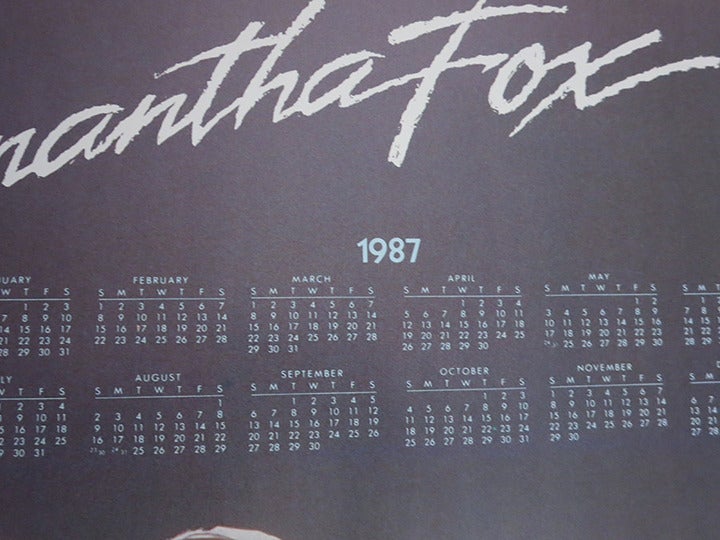 Original UNUSED vintage poster from 1987. Promo poster for pin-up girl and singer Samantha Fox. On one side is a 1987 calendar with Fox in repose; on the other are model shots and text promoting her single "Touch Me (I Want Your Body)" b/w "Drop Me a Line" on Jive Records. Gentle vertical bend along the left side of the calendar, but otherwise smooth and like-new clean (see pics). RARE!
