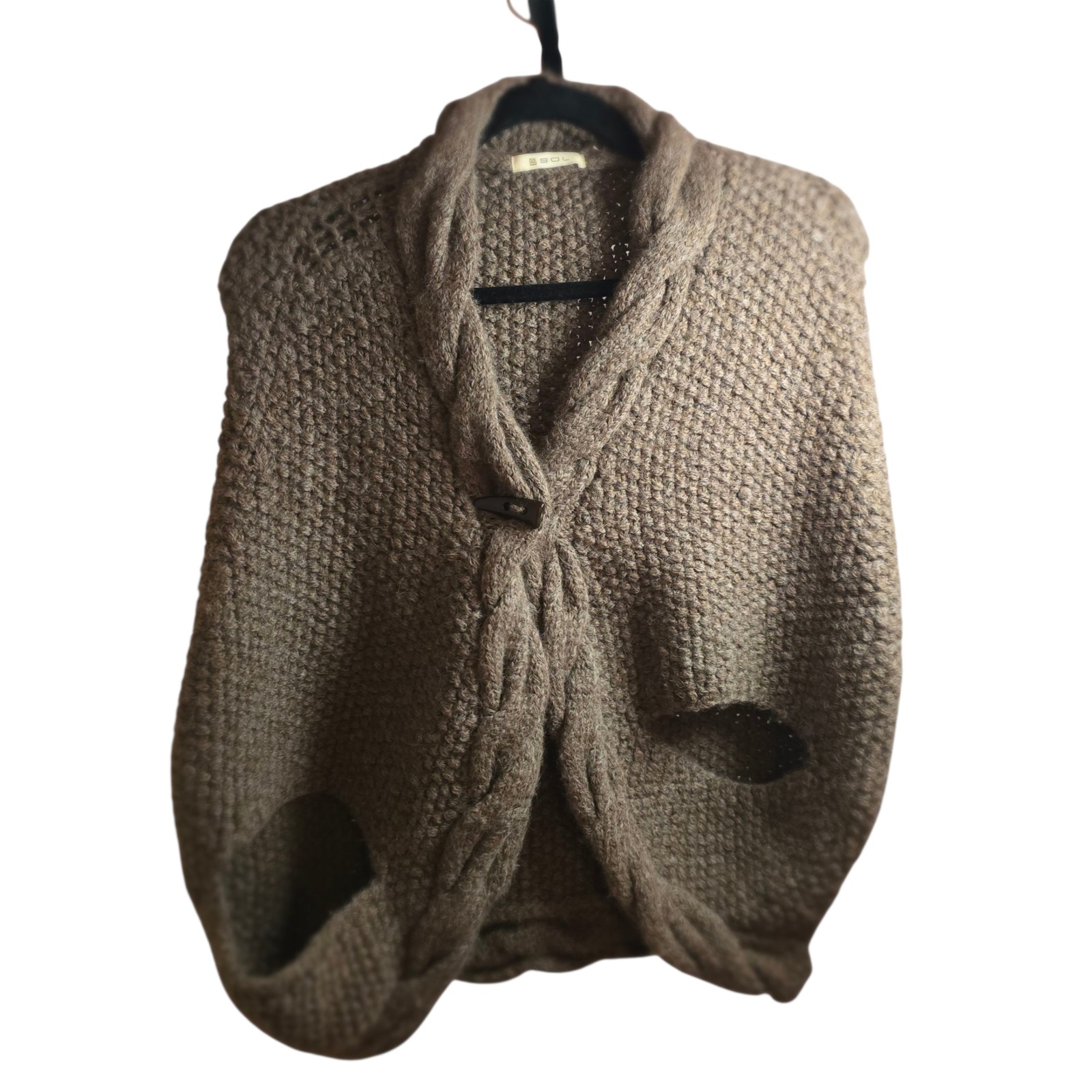 Cozy, artisan-crafted SOL poncho made in Peru from 100% baby alpaca wool — a luxuriously soft, lightweight fiber prized for its warmth and breathability. Features a chunky hand-knit seed texture, braided cable trim, and a single horn-style toggle closure at the chest. The sculpted arm openings make it easy to layer over turtlenecks or long-sleeve tees.