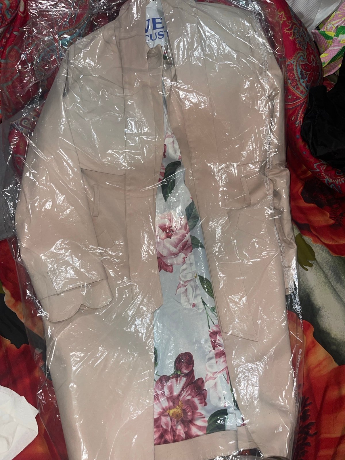 Recently drycleaned but some very very tiny stains only noticeable if u look really hard see pics pls