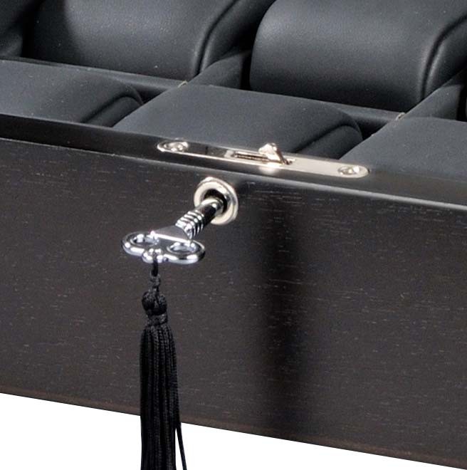 Showcase and store up to 8 of your finest timepieces in this Volta watch case featuring a matte carbon fiber or rustic brown finish and a rich black leatherette interior. The locking upper portion with its glass viewing window keeps your watches secure, and the lower drawer provides space for keeping even more items.