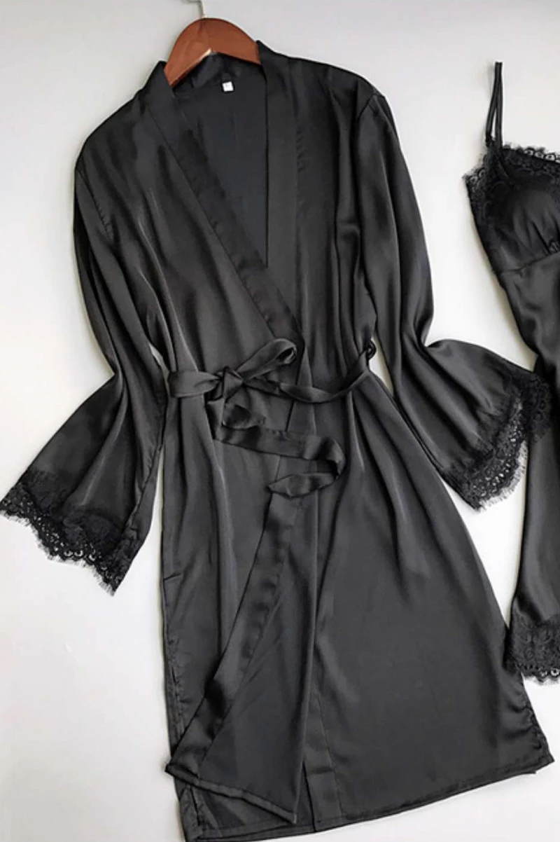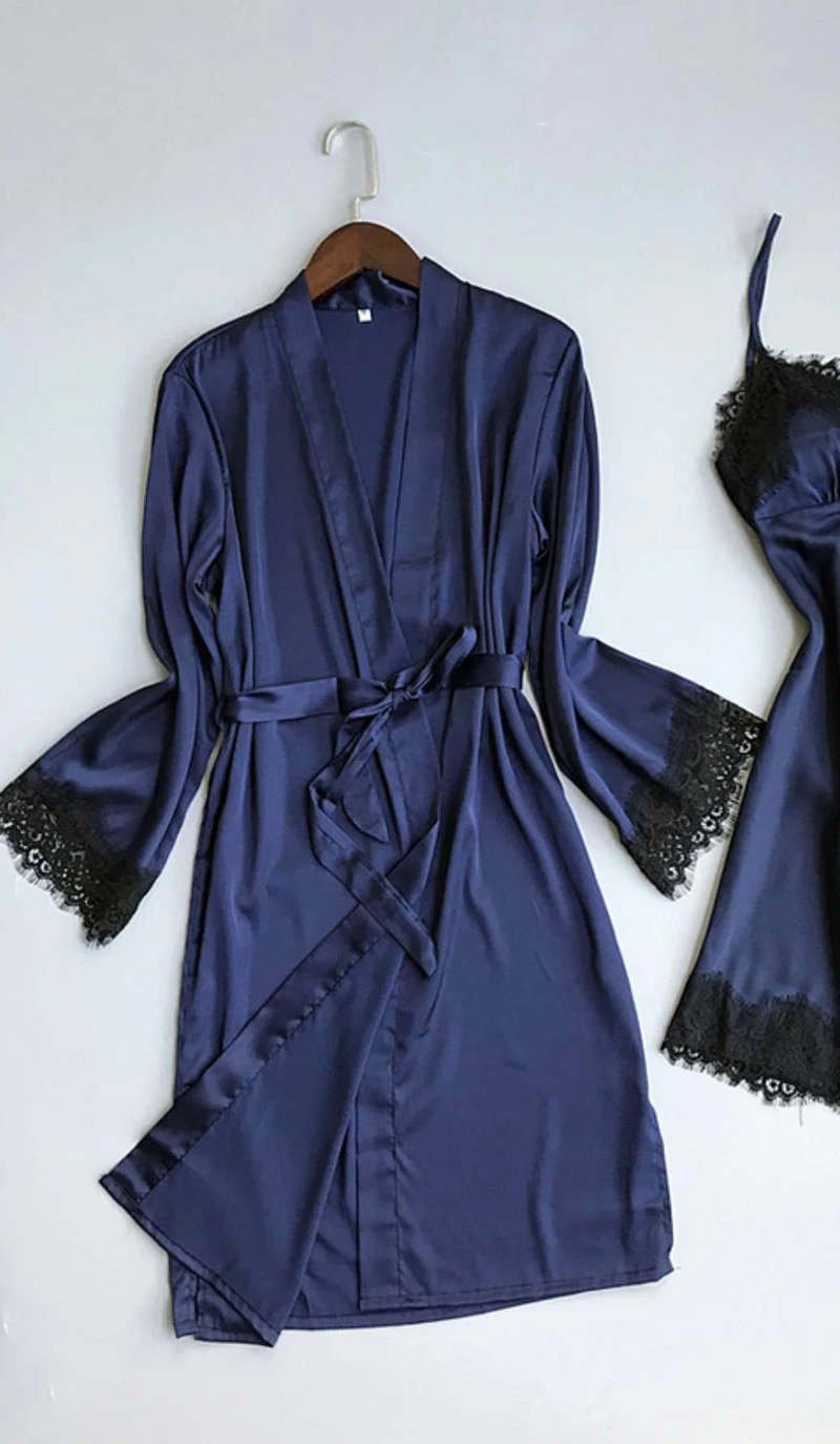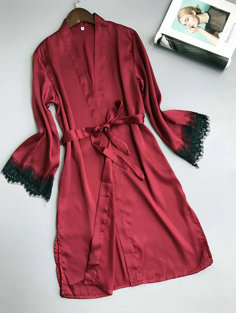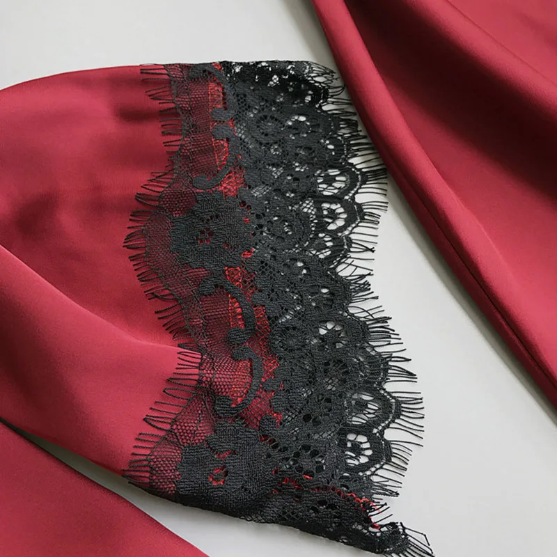 Womens Sexy Silk Satin Nightgrown Lace Long Sleeve Sleepwear Robes Night Gown Nightwear Women Clothing